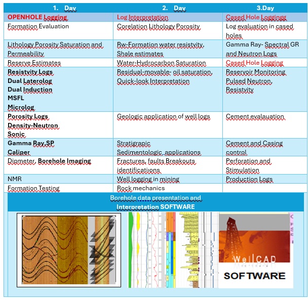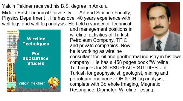 logging course on the internet Click below link to register (and more information) for PEKLINE's 3 days Well logging course: Well Logging Course - By Yalcin Pekiner - You can have this course either on Internet or in Classroom Learning Environment (in Ankara/Turkey or in your country) |